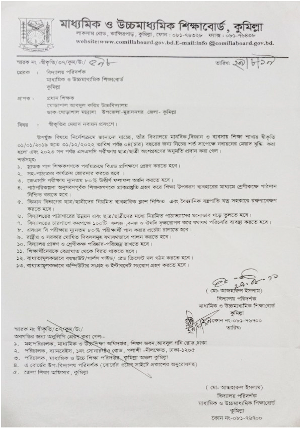 প্রতিষ্ঠানের স্বীকৃতি